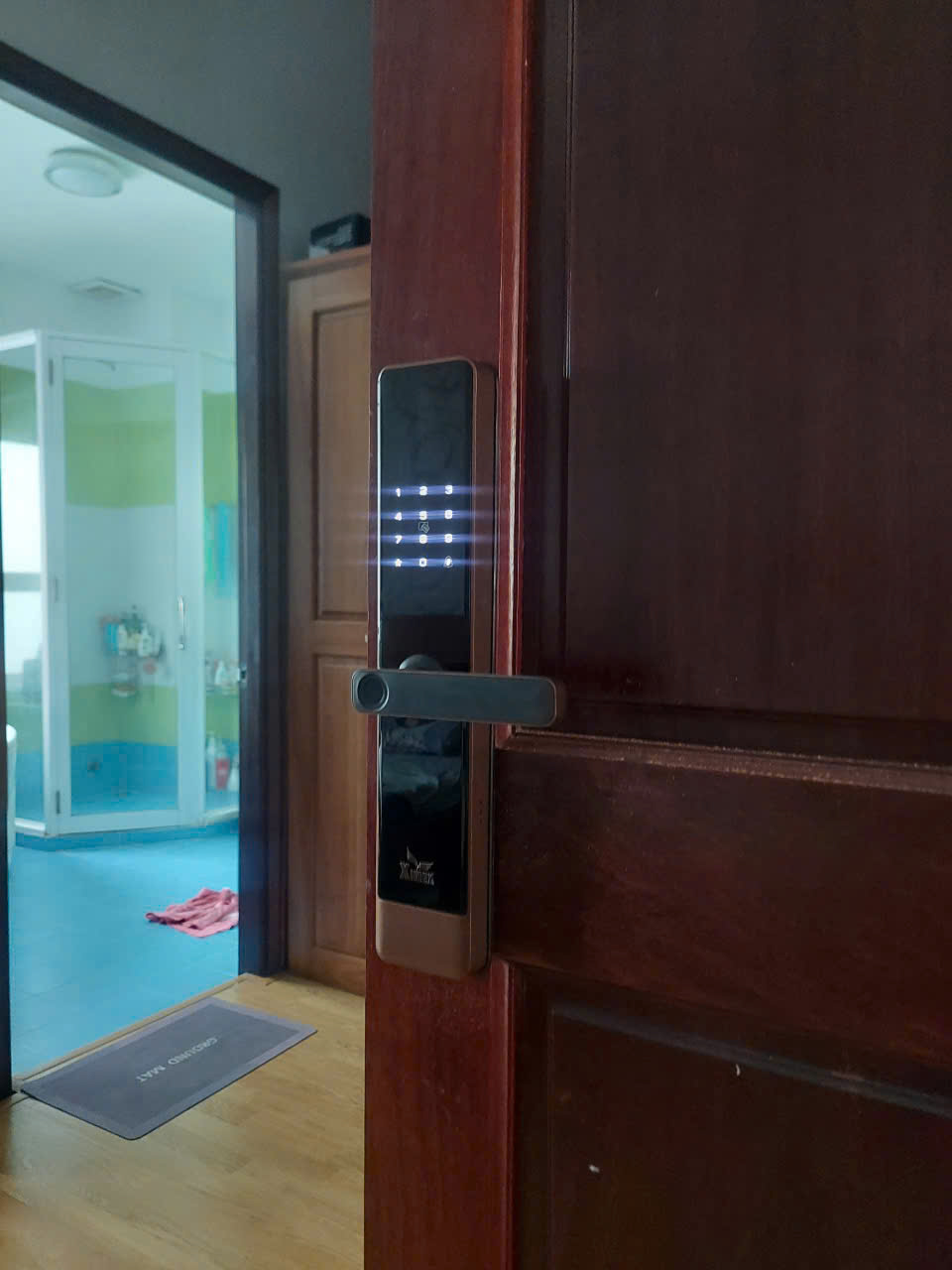 HÌNH ẢNH KHÓA VÂN TAY CỬA GỖ XIMEX K79 ĐƯỢC LẮP ĐẶT CHO KHÁCH.